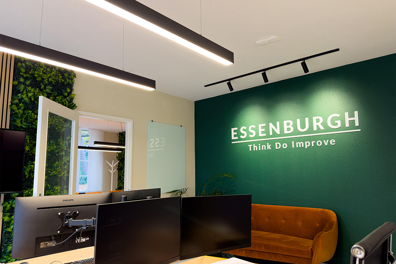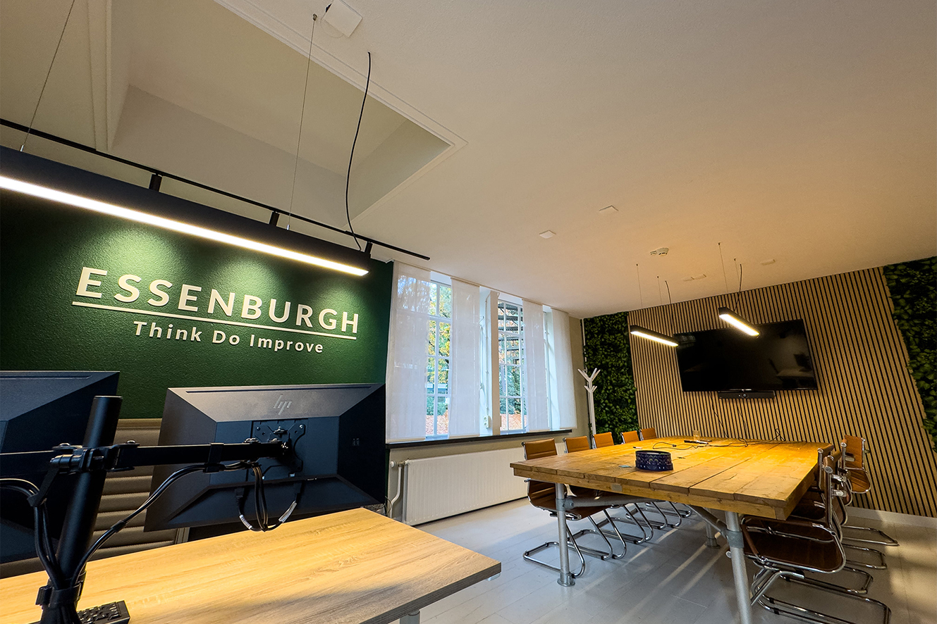 Zo. Tijd voor een flinke teug adem, want we zijn er nog niet. Je vraagt je misschien af: “Joh, huren op het Bouw & Infra Park, logisch natuurlijk. Maar zaten ze dan niet op dat mooie landgoed?” Terechte vraag. Laten we weer een kleine sprong terug in de tijd nemen. Naar 2020. Wellicht herinner je het nog: iets met een lockdown en thuiswerken. In die periode moest Essenburgh (het bedrijf, niet het landgoed) op zoek naar nieuwe huisvesting. Zo kwamen ze terecht bij People@Places in gebouw 40. Maar toen dat pand een andere bestemming kreeg, moest er iets nieuws komen.